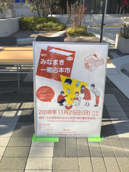 11月25日(日)に相鉄線南万騎が原駅前の広場で「みなまき一箱古本市」に参加してまいりました。1週間ほど前の天気予報では天気がいまいちだったりしたので、当日まで冷や冷やしていましたが、雲一つない空とわりと暖かい気温で、この時期の外イベントとしては最高のロケーションではなかったかと思います。当日は、南万騎が原駅を出てすぐのテントにこんな看板がありました。