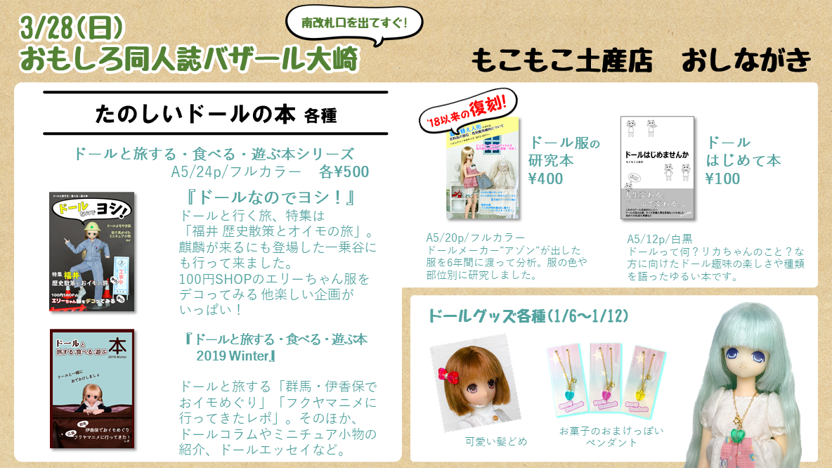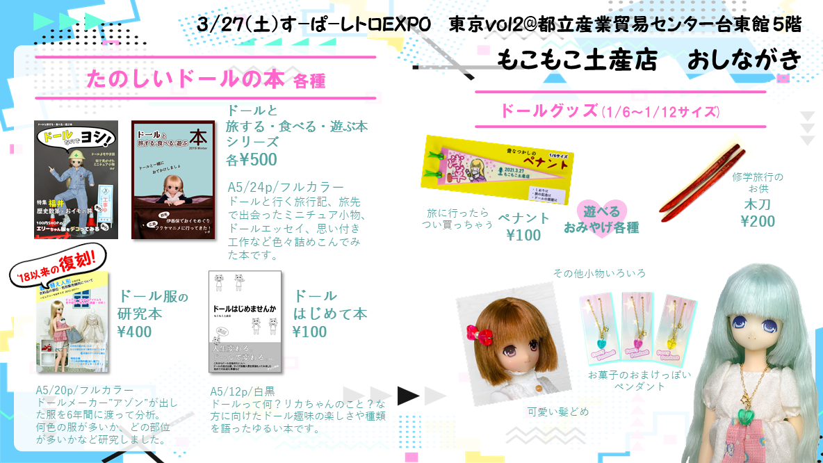 3/27(土) すーぱーレトロEXPO 、3/28(日)おもしろ同人誌バザール大崎 おしながき 今週末3/27, 28に久しぶりのイベントに出展します。 3/27(土) スーパーレトロEXPO 東京 vol2 @ 都立産業貿易センター台東館5階 ※前売り券制、本日時点でありがたいことに券は完売です。 3/28(日) おもしろ同人誌バザール@大崎 まいどおなじみ大崎駅前です。南口改札を出てすぐ。場所は当日決まりますので、いらしてのお楽しみ! [0回]PR