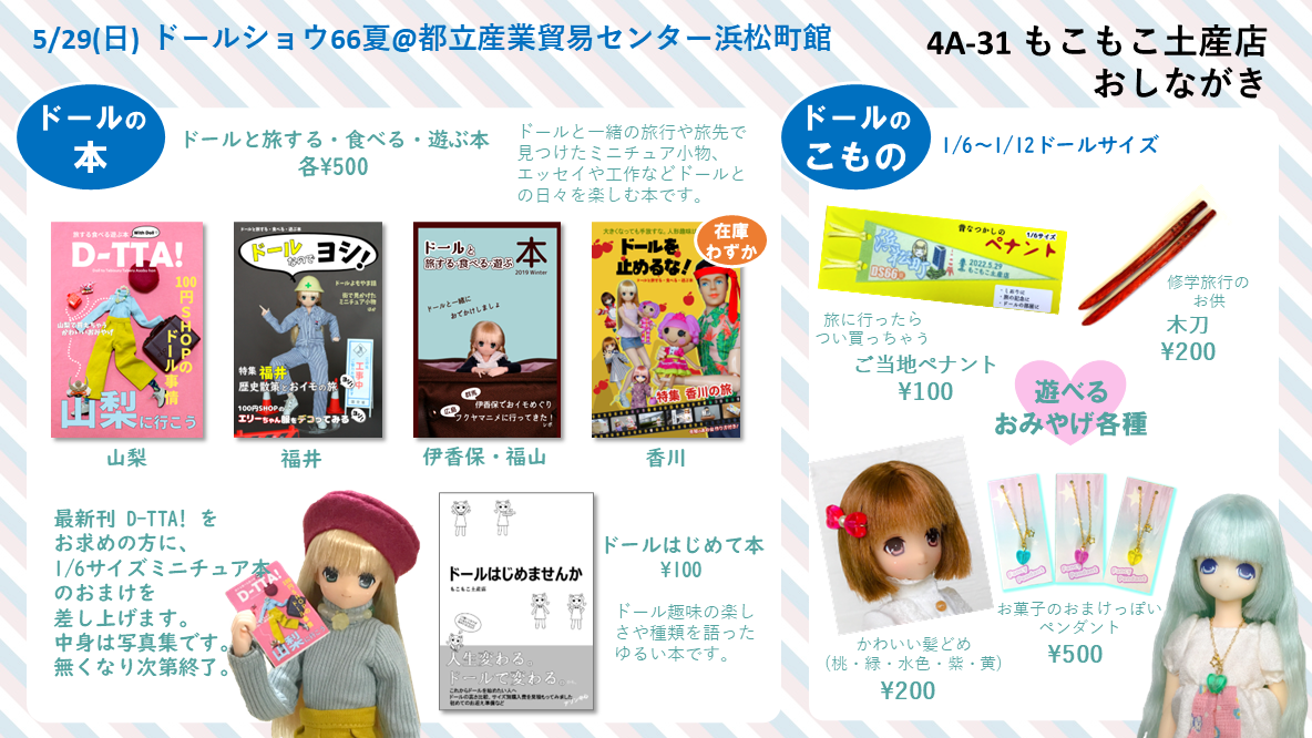 5/29(日)に都立産業貿易センター浜松町館で開催されるドールショウ66 夏にサークル参加します。