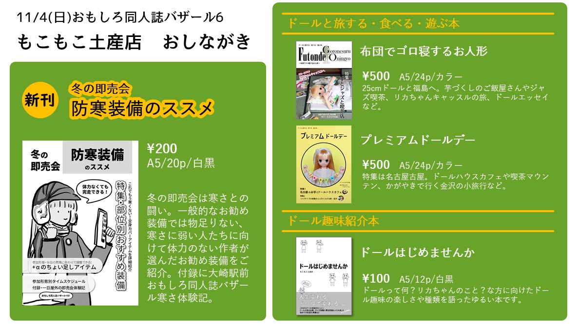 これはアレですね、"1/6ドールの雑誌風なんでも同人誌"が他で発行されたら、もこもこ土産店はすぐ休刊しそうですね。やばいですね。