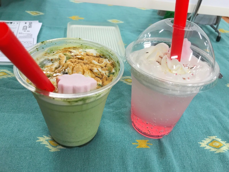 定番のコーヒー類のほか、某老舗コーヒーチェーン店のドリンクにも負けないオリジナルドリンクが2種類。桜色のソーダ水にクリームをかけたすっきり飲み心地のドリンクと、抹茶きなこ味の甘くておいしいドリンク、どちらも春をイメージした今回限定のもののようです。