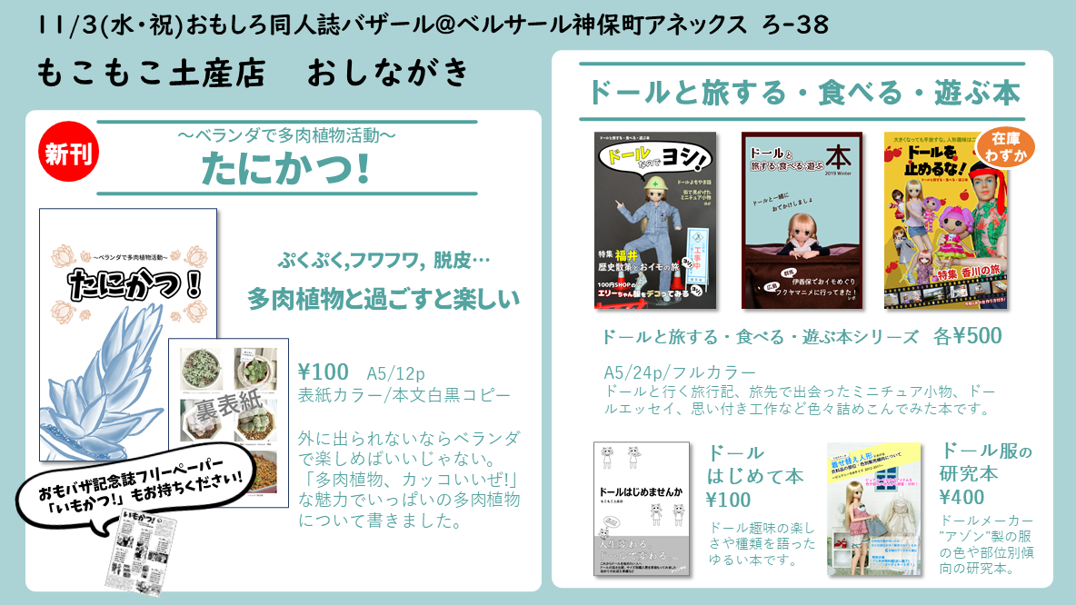11/3(水・祝)に東京・神田のベールサール神保町/ベルサール神保町アネックスで同時開催される「おもしろ同人誌バザール11@神保町」にサークル参加します。