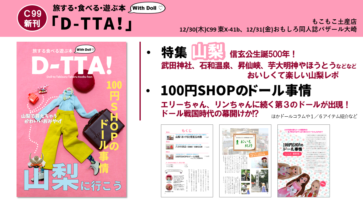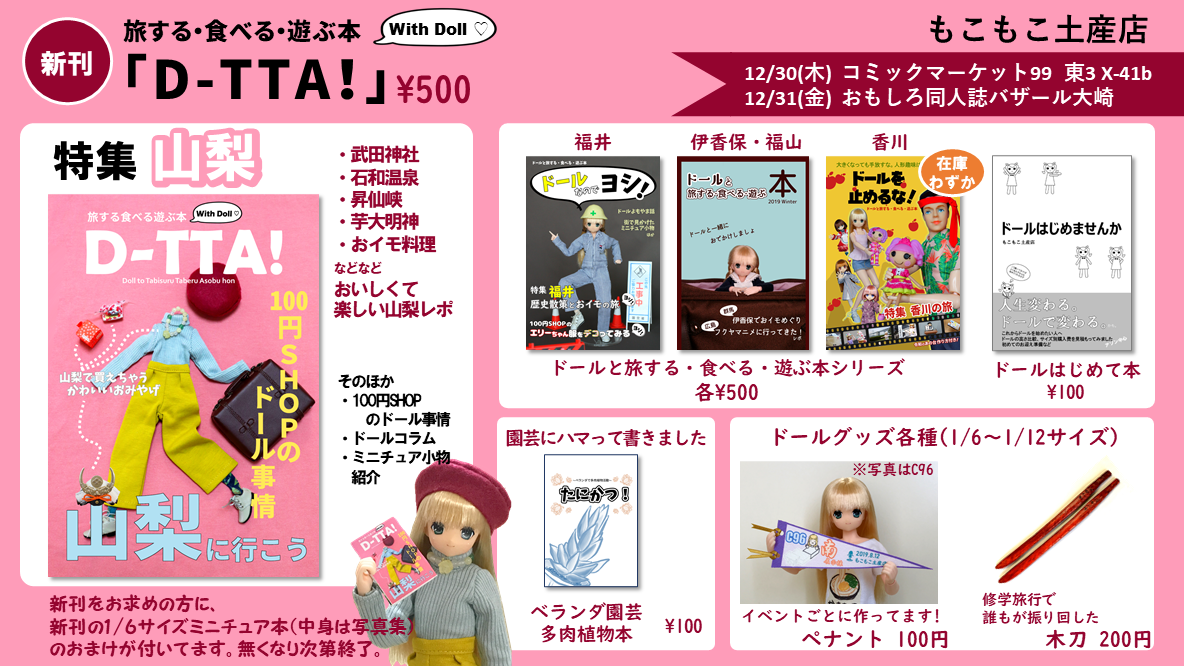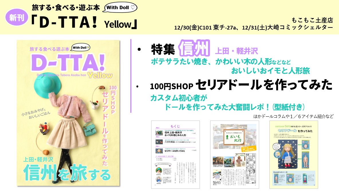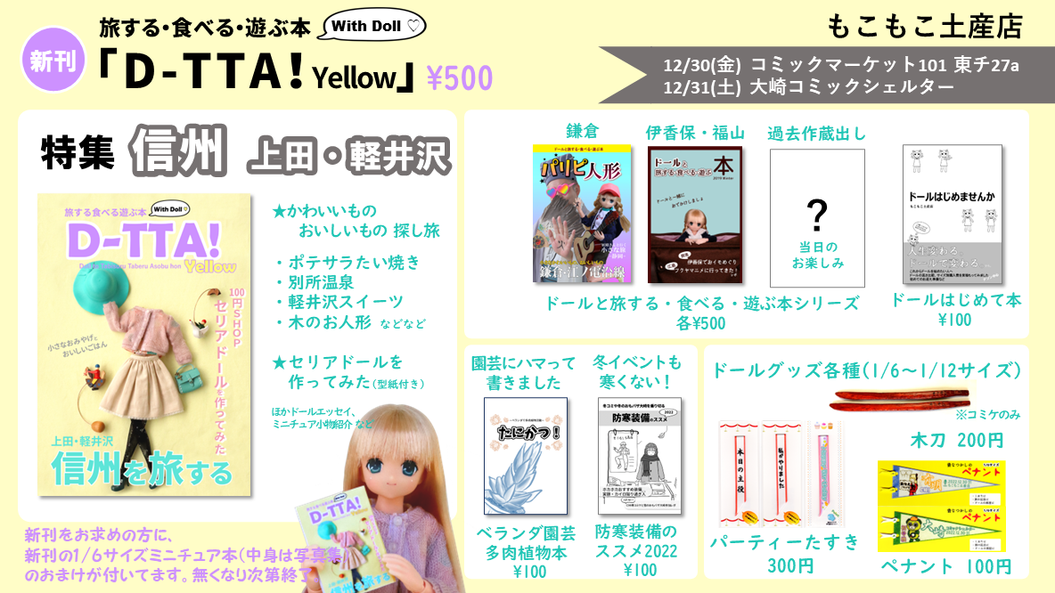 新刊「D-TTA! Yellow」、「ドールはじめませんか」、「たにかつ!」の3つが現在の在庫です。