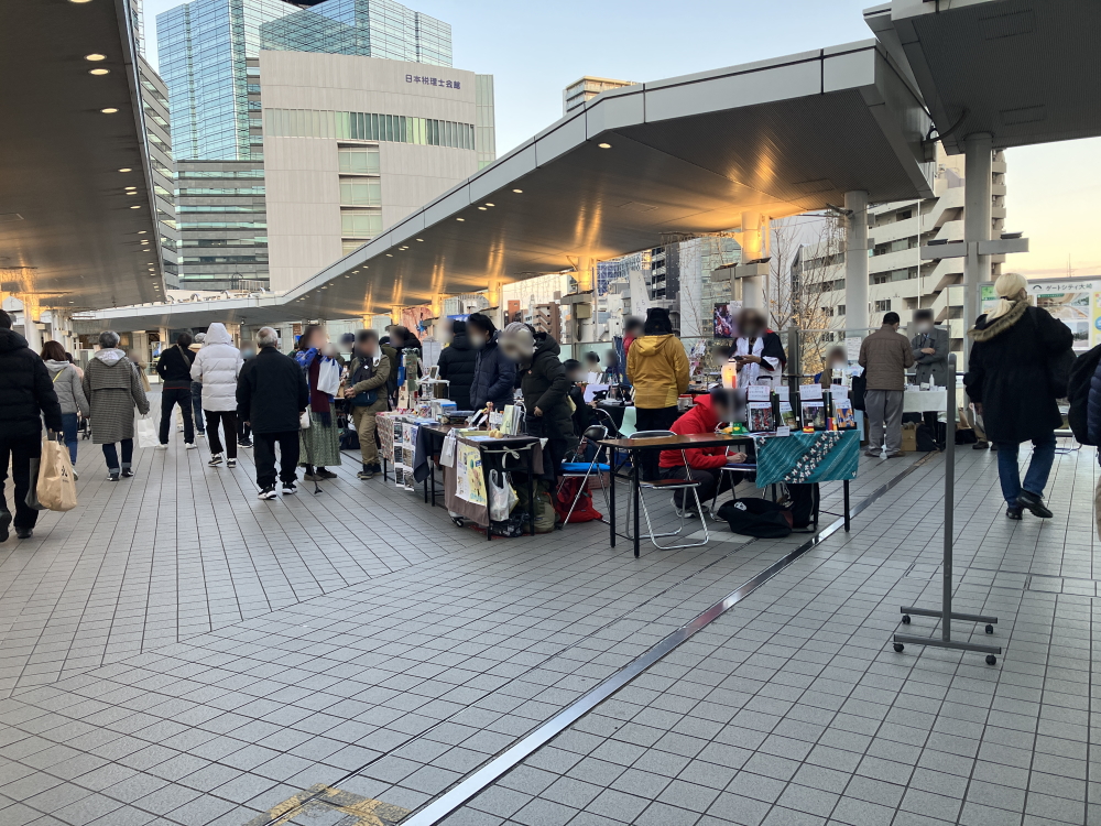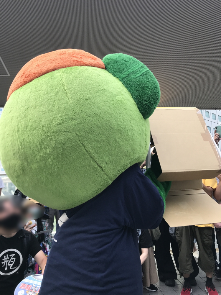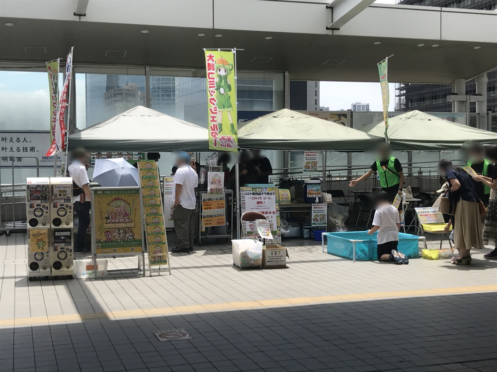 途中で、大崎駅西口商店会のマスコットキャラクター「大崎一番太郎」(通称いっちゃん)がスペースを回ってくれました。