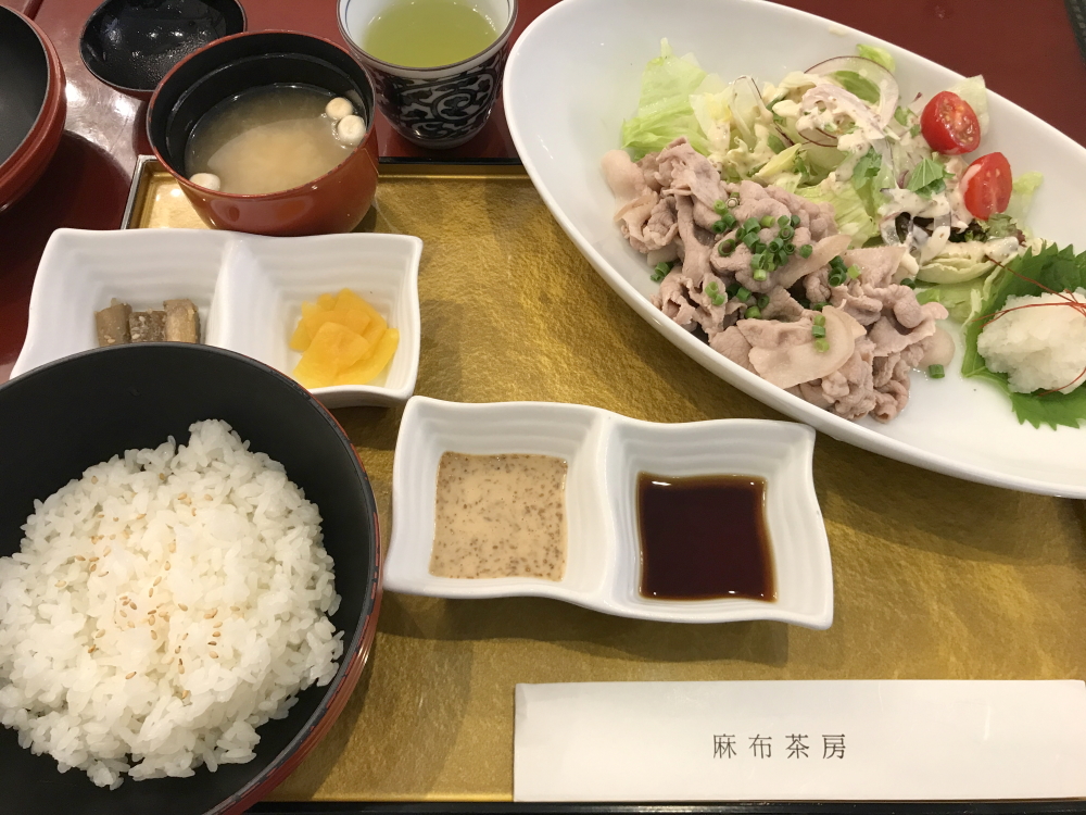 作者Bのお昼ご飯。ゲートシティ大崎内の「麻布茶房」にて豚しゃぶおろし御膳。
