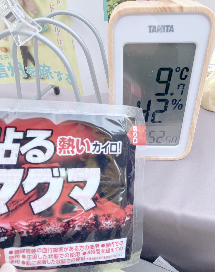 ※ちなみに、湿度や空気の悪さ(?)で温度が低くても原因不明で具合が悪くなる方に個人的おすすめは、タオルにハッカ油をスプレーしたものを持参です。具合が悪くなってきたら匂いを嗅ぐと頭がスッキリします。匂いが強いので、スプレーした面が内側になるように折って持ち運ぶと影響が少ないです。