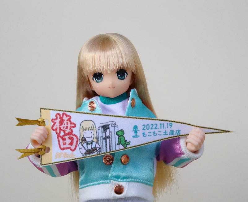 イベントごとに作っている1/6サイズペナント、今回は梅田スカイビルの前でたこ焼きをほおばるおいもちゃんです。