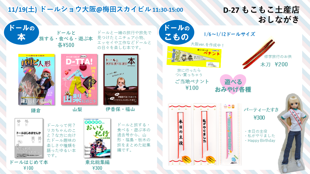 2022/11/19(土)に大阪の梅田スカイビルにて開催されたドールショウ大阪にディーラー参加をしました。