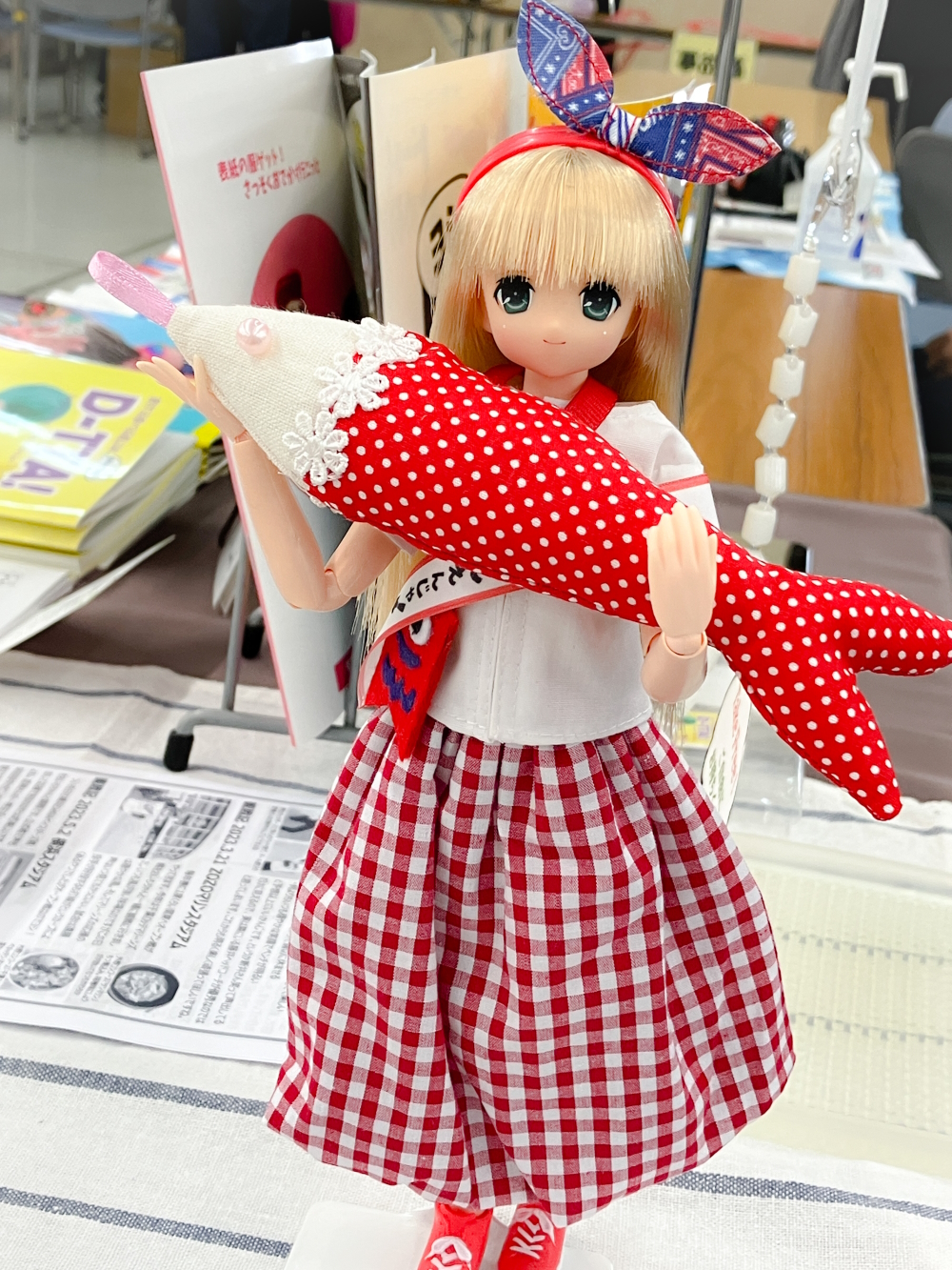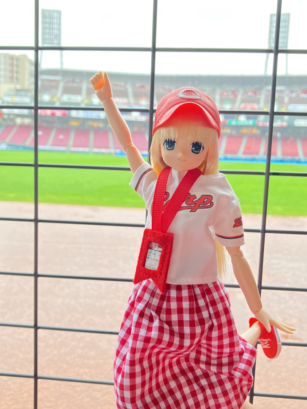 一般参加の若い女の子たちはぬいを持っている人が多かったです。当サークルのグッズの中にもぬいにも持てるものがあるので、サークルスペースにドールと共にぬいを置きたいな、などと考えたりしましたが、まずはぬいを手に入れるところからです。とりあえず広島土産にスラィリーぬいぐるみ(広島カープのマスコット)を買ってみたのですが、ちょっと違う気もします笑