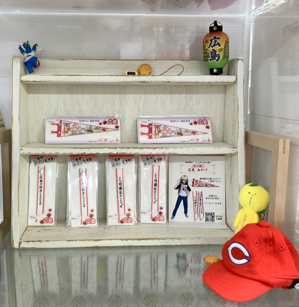 ドールサイズの広島土産をレンタルショーケースで販売しませんか、とお声がけ頂き、置かせて頂くことになりました。