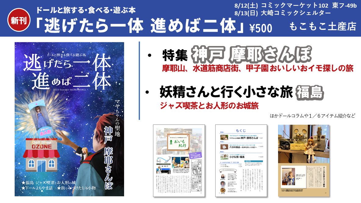 神戸・摩耶、甲子園への1/6ドール旅、福島への1/12ドール旅、ミニチュア小物紹介、ドールエッセイなどの詰まった読み物多めの本です。